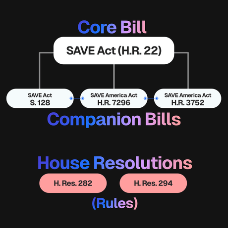 The SAVE Act Explained...And Where to Find ItHi Friend, We’ve received a number of inquiries recently asking: “Are you tracking the SAVE Act?” Short answer: 👉 Yes And not just the SAVE Act itself—we’re tracking the bills connected to it. Let’s walk through why it may appear confusing.